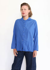 Classic cut shirt is hand dyed and has silver zari topstitching, mother of pearl buttons.