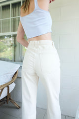 This is our Plein Relaxed Straight--- A natural state sailcloth jean cut from flecked cotton denim, rinsed and sun baked for a crisp broken-in look. Designed to sit at the natural waist and fall into a relaxed silhouette, worn cuffed, rolled or straight.