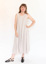 Gerties Gored Dress, in 100% linen, has a graceful elongated oval front panel design in the front and flows freely down to graze over the body in a flattering silhouette. With its hidden pockets and bra friendly design, sure to become a warm-weather go-to!