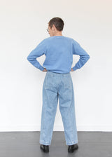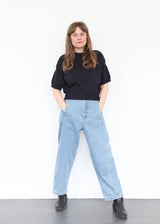 This pant has a roomy fit and sits comfortably at the natural waist, size down if you like a more fitted look.